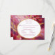 Responda al amor con estilo con esta tarjeta RSVP de Elegancia Contemporánea, un compañero de diseño para su moderna suite boda. En esta pieza destacan los expresivos florales de brusco en fucsia rica, burdeos, rosados ondulados y un Relieve metalizado de oro de lujo, que le dan el aspecto de una obra de arte pintada a mano. Sus detalles RSVP se presentan en un elegante marco oval adornado con un falso Relieve metalizado de oro, creando un punto focal refinado que armoniza maravillosamente con la audaz y romántica paleta floral. La combinación de estilo contemporáneo y estilo artístico de primera hace de esta tarjeta de respuesta un lugar ideal para los bodas modernos con un toque de drama y gracia. Ideal para coordinarse con el conjunto completo de artículos de papel boda, esta tarjeta no sólo captura tu tema sino que eleva toda tu celebración.