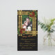 Elegancia de oro de la tarjeta de fotos de Navidad. Cintas doradas y adornos brillantes sobre fondo negro. El texto es totalmente personalizable. Añade tu información o cámbiala por completo.