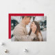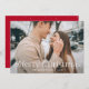 Simple tarjeta de vacaciones con tu foto horizontal con la imagen completa de "Feliz Navidad" mostrada en elegantes letras blancas. Personalice la elegante tarjeta de Navidades fotográficos con su apellido y el año. La tarjeta se invierte para mostrar un fondo rojo con puntos blancos sutiles.