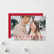 Sencilla tarjeta de vacaciones con tu foto horizontal con la imagen de "Feliz Navidad" mostrada en elegantes letras rojas. Personalice la elegante tarjeta de Navidades fotográficos con su apellido y el año. La tarjeta se invierte para mostrar un fondo rojo con puntos blancos sutiles.