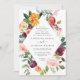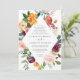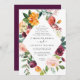 Una elegante y moderna invitación a la boda con un tema de otoño. Flores de caída y follaje crean un marco de diamante alrededor del texto de invitación a la boda. La floral acuática otoñal incluye rosas amarillos y de ciruela, flores rubíes, mamáes rojas polvorientas y hojas de otoño. La invitación a la boda de otoño incluye espacio para los nombres de la pareja. Personalice la invitación de boda de otoño con los detalles de su boda. Esta invitación coincide con nuestra colección "Autumn Elegance".