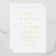 Invitación minimalista y moderna a la boda con sus nombres y detalles bodas en letras de Relieve metalizado dorado con acentos caligráficos. El fondo blanco puede cambiarse a un color de su elección. Diseñado para coordinar con nuestra colección de bodas Modern Elegance.