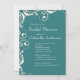Nuestra verde azulada invitación a la ducha de novias verde es el comienzo perfecto de su ducha nupcial de primavera, ducha de novias de verano, ducha nupcial o ducha nupcial de invierno que su novia y huésped amarán. Nuestras elegantes invitaciones a la ducha nupcial cuentan con un florido decorado en un verde azulado fondo azul y con una parte trasera a juego. Visita nuestra tienda para elegir colores adicionales en esta invitación a la ducha de boda.