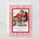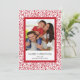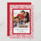 Moderna tarjeta de felicitación para festividades fotográficas con un hermoso marco floral para acentuar la foto de sus vacaciones. Voltea nuestra tarjeta de fotografía de navidad para ver un fondo rojo de coordinación. Personaliza tu información y estás listo para ir.