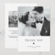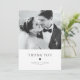 Tarjeta de agradecimiento de boda Elegancia Moderna Tipografía Negra | Envía agradecimientos a familiares y amigos por ser parte de tu día especial con esta tarjeta de agradecimiento de boda personalizable. Cuenta con tipografía minimalista con ilustración de corazón. Muestra tu foto de boda favorita en la parte frontal de la tarjeta y agrega otra foto en la parte trasera de la tarjeta. Esta tarjeta postal de agradecimiento está disponible en otros colores.
