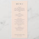 This elegant wedding menu features a minimalist design with a light beige background and classic serif typography, creating a sophisticated and refined aesthetic. The layout is clean and well-organized, with distinct sections for starters, salad, main course, and dessert, each separated by dotted lines for clarity. The color palette consists of soft beige tones with black text, ensuring high contrast and readability. Perfect for formal events, this menu combines simplicity with elegance, making it an ideal choice for couples seeking a timeless look for their special day.