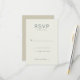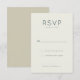This wedding RSVP card features a minimalist design with ample negative space, creating an elegant and clean appearance. The soft beige background provides a neutral canvas that enhances readability, while the dark gray text offers a subtle contrast. The modern sans-serif typography emphasizes clarity and simplicity, making it perfect for formal events. Customizable fields allow for personalization, ensuring each response is tailored to the guest. The overall mood is sophisticated yet approachable, ideal for conveying important information in a stylish manner.