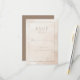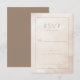 This elegant RSVP card features a minimalist design with a soft beige and light brown color palette, creating a warm and inviting atmosphere. The subtle watercolor texture adds an organic touch, reminiscent of hand-painted artistry, while the centered layout ensures clarity and simplicity. With a mix of serif and script fonts, the card offers customizable fields for responses, making it perfect for formal events that require a sophisticated yet approachable look. Its refined style is ideal for weddings or upscale gatherings, conveying a mood of calmness and refinement.