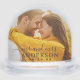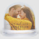 This stylish wedding snow globe features your photo with "Mr and Mrs" in modern black calligraphy script and your last name and wedding date overlaid on the image. The back displays a second wedding photo for a personalized two-sided design. Perfect as a gift for newlyweds or an anniversary keepsake to display at home. All text and photos are fully customizable.