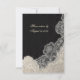 Complete your wedding suite with this elegant Black Tie Blossom RSVP card. Designed in a refined black, ivory, and soft champagne palette, this formal response card features lace-inspired detail, ornate damask texture, delicate embellishment, and a polished black-tie aesthetic. The front includes space for guests to reply with ease, while the coordinating back continues the collection’s romantic, couture-inspired styling. Perfect for formal weddings, black-tie celebrations, and couples who love timeless floral stationery with a luxurious and sophisticated feel. This RSVP card pairs beautifully with matching invitations, save the dates, and other wedding paper goods in the Black Tie Blossom collection.