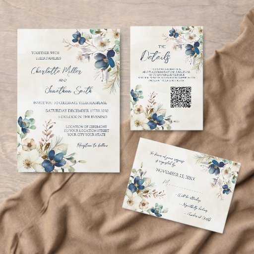 Elegant Blue Floral Winter WeddingDiseñado por Dreaming Mind Cards