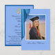 A unique card with an elegant blue, satin color scheme. Similar blue background on the back of the card containing party details. Suitable for a high school or college graduation. The smaller size allows you to include it with a graduation announcement - sent only to those you wish to invite to the party. The photo and all text are easily changed with the template. Selecting “Personalize this design” offers you several edit options to easily change the text (wording, plus type font, color, size, position) and to edit the design elements. You may also want to scroll down to the section “Transfer design to a product” for a few suggestions about other items this design can be used on. NOTE: there are online sources that allow you to create a free graduation website. Just do a search for it and choose the one you want.