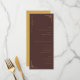 This elegant wedding menu features a sophisticated design with a deep brown background and gold accents, creating a luxurious feel. The layout is clean and symmetrical, with sections for Starters, Salad, Main Course, and Dessert clearly defined by bold, uppercase serif fonts. Decorative golden lines add an Asian-inspired touch to the overall aesthetic. The typography combines cursive headings with readable serif body text, enhancing both style and clarity. Perfect for adding a refined touch to your special day, this menu exudes understated elegance and sophistication.
