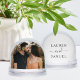 This sophisticated wedding snow globe pairs a clean couples monogram design with your favorite photo for a truly personalized keepsake. The front features your names in elegant serif typography with a delicate script accent, while the back displays your wedding photo. A thoughtful gift for newlyweds, an engagement celebration, or a meaningful anniversary memento. All text is fully customizable.