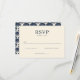 This elegant wedding RSVP card features a minimalist design with a cream-colored background and dark navy blue text. The layout is clean and sophisticated, utilizing serif fonts for a classic look, complemented by a cursive script that adds a personal touch. The card includes options for guests to indicate their attendance, ensuring clarity and ease of use. Perfect for formal occasions, this design exudes an air of refinement and simplicity, making it ideal for couples seeking a timeless and understated invitation style.