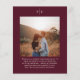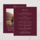 Classic style wedding menu featuring a simple yet elegant design in a deep burgundy color that is perfect for a fall wedding or a winter / Christmas wedding. Use the template to add a photo or remove it in the design editing tool.