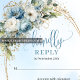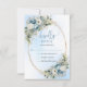 Elegant Dusty Blue Floral Gold Frame Wedding RSVP