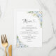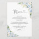 Elegant Dusty Blue Wedding Menu is an elegant and modern wedding menu designed in a soft dusty blue tone that exudes calm sophistication. The clean and refined layout creates a harmonious and cohesive look for the wedding table setting. Beyond clearly presenting the meal courses, this menu also serves as a stylish decorative element, enhancing the romantic and timeless atmosphere of the couple’s special day.