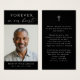 Keep the memory of a loved one close with this custom color personalized prayer card (shown in black) featuring one treasured photo, the title FOREVER IN OUR HEARTS, name and dates on the front and an editable heartfelt remembrance message accented with a simple cross on the back. With its simple yet elegant classic design and modern handwritten typography, it makes a meaningful keepsake to share at a funeral, memorial service or Celebration of Life and offers comfort and a lasting tribute for family and friends. Its small and portable size of 3.5x2" (wallet-sized) makes it convenient for loved ones to carry it with them as a reminder of your loved one’s life and spirit. Personalization makes each card unique.