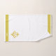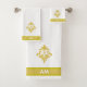 Golden fleur de Lis, monogram and stripe on white. Elegant modern towel set. Image only on one side.