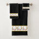 Elegant golden horseshoes decorated with flowers on black and white Bath Towel Set. Simple stylish design. Horseshoes are believed to bring good luck and protection.
