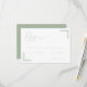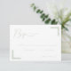 This elegant wedding RSVP card features a minimalist design with ample negative space, creating a clean and sophisticated look. The soft pastel green color palette adds a gentle touch, while the modern script font for "RSVP" exudes formality and grace. Decorative corner brackets provide subtle vintage charm, enhancing the overall understated elegance. Perfect for formal occasions, this card ensures clear communication with customizable fields for names, responses, and attendance numbers, making it both functional and stylish.