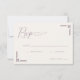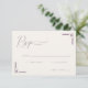 This elegant wedding RSVP card features a minimalist design with soft lavender accents on a clean white background, creating a sophisticated and modern look. The layout is centered, with ample negative space enhancing readability and visual appeal. Decorative corner brackets add subtle geometric interest, while the combination of cursive and serif typography provides an inviting yet formal tone. Perfect for couples seeking a stylish and understated way to manage their guest list, this card conveys a mood of elegance and clarity.