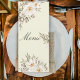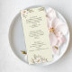 The clean, thoughtfully structured format allows your menu selections to shine while maintaining an upscale and cohesive look. A blend of graceful script and classic lettering adds timeless charm, making this design perfect for garden weddings, outdoor celebrations, or sophisticated indoor receptions.