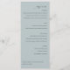 This elegant wedding menu features a minimalist design with a soft mint green background, creating a serene and sophisticated atmosphere. The layout is clean and structured, with sections for Starters, Salad, Main Course, and Dessert, each highlighted in uppercase serif font. Typography plays a key role, using a mix of cursive and sans-serif fonts to add visual interest while maintaining readability. Perfect for formal events, this design conveys elegance and refinement through its simple yet stylish presentation.