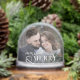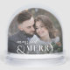 This elegant modern newlyweds keepsake Christmas snow globe features a photo template with “Married & Merry” bold stylish typography overlay.