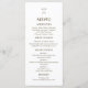 Celebrate your special day with this personalized Pearl Christian Wedding menu card, a classic and elegant design that perfectly complements any sophisticated wedding theme. This religious menu card features a delicate pearl design paired with a stylish blend of mocha modern typography and graceful calligraphy script fonts set against a crisp white background. The card includes a refined monogram of the couple’s initials and a meaningful bible verse on the back. Simple, chic, and minimalist, this menu adds a timeless charm to your God-centered wedding table. Pairs beautifully with matching response cards for a coordinated look your guests will love.