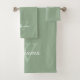 Add a touch of timeless elegance to your bathroom with our custom monogram bath towel set, personalized with your name and initial in a beautifully simple and modern design. Featuring the name and initial in a blend of modern and script fonts with sage green and white text set against a sage green background, these colors can be changed if preferred. Whether you're updating your own space or gifting to someone special, this piece combines style and individuality in one stunning accent.