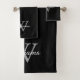 Add a touch of timeless elegance to your bathroom with our custom monogram bath towel set, personalized with your name and initial in a beautifully simple and modern design. Featuring the name and initial in a blend of modern and script fonts with grey and white text set against a black background, these colors can be changed if preferred. Whether you're updating your own space or gifting to someone special, this piece combines style and individuality in one stunning accent.