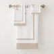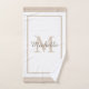 Add a touch of timeless elegance to your bathroom with our custom monogram bath towel set, personalized with your name and initial in a beautifully simple and modern design. Featuring the name and initial in a blend of modern and script fonts with beige and brown text, set against a white background along with a beige border, these colors can be changed if preferred. Whether you're updating your own space or gifting to someone special, this piece combines style and individuality in one stunning accent.