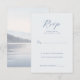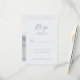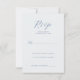 This elegant wedding RSVP card features a minimalist design with a serene light blue background and dark navy text, creating a sophisticated and calming atmosphere. The layout is clean and formal, with ample negative space that emphasizes clarity and readability. It includes customizable placeholders for names and attendance details, making it easy to personalize. The typography combines cursive script for the "RSVP" heading with simple serif fonts for instructions, enhancing its stylish yet functional appeal. Perfect for couples seeking an understated yet refined invitation suite, this card sets the tone for a memorable event.
