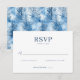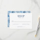 This elegant wedding RSVP card features a clean, minimalist design with a crisp white background and deep navy blue text. The layout is structured and modern, with bold serif typography for the "RSVP" heading and simple sans-serif fonts for response options, creating a sophisticated yet approachable feel. A decorative cursive script adds a personal touch, while ample negative space ensures clarity and focus on the essential details. Perfect for formal events, this card balances professionalism with warmth, making it an ideal choice for couples seeking a refined and functional invitation accessory.