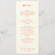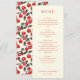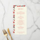 This elegant wedding menu features a clean, centered layout on a light peach background with a sophisticated color palette of deep red and black. The design uses a combination of serif and sans-serif fonts to create a balanced hierarchy, highlighting sections like "STARTERS," "SALAD," "MAIN COURSE," and "DESSERT." Dotted lines separate each course, enhancing readability while maintaining an understated, formal aesthetic perfect for special occasions. Customizable placeholders allow personalization, making it ideal for weddings or upscale events, evoking a mood of refinement and anticipation.
