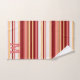 elegant red white and pink stripes pattern monogram bath towel set. custom colorful stripes pattern bath towel set.