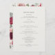 Beautiful watercolor bridal bouquet, with flowers in rich shades of red and pink, trimmed with silver green botanicals... and your dinner menu in lovely fonts.