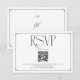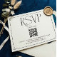 This elegant RSVP card features a sophisticated black and white design, perfect for any modern wedding. The prominent 'RSVP' in a classic script font is complemented by a clear QR code, making it easy for guests to access your wedding website and respond. Below the QR code, you'll find a dedicated space for your wedding website URL and a heartfelt closing message. It's a chic and efficient way to gather your RSVPs while adding a touch of class to your wedding stationery. This design ensures a seamless RSVP process for your guests.