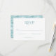 This elegant wedding RSVP card features a minimalist design with ample negative space, creating a clean and sophisticated look. The soft teal color palette contrasts beautifully against the light grayish-white background, enhancing readability and visual appeal. The layout includes a central alignment of text, with clear options for guests to indicate their attendance, ensuring a straightforward response process. Perfect for formal occasions, this card combines modern aesthetics with functionality, making it an ideal choice for couples seeking a refined yet approachable invitation style.