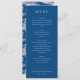 This is a minimalist style image featuring an elegant wedding menu card with a sophisticated blue background. The text, presented in a clean and classic white font, lists the courses for Lauren & Benjamin's special day on May 23, 2026. From fresh starters to delightful desserts, each item is thoughtfully chosen to create a memorable dining experience. The overall mood is refined and inviting, perfect for capturing the essence of a beautiful celebration.