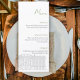 Easily customize the menu with your own dishes, courses, and wedding details to perfectly match your celebration. Whether placed at each guest’s seat or displayed at the reception, this menu adds a polished finishing touch to your wedding tablescape.