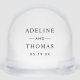 Wedding photo keepsake snow globe features a portrait of the bride and groom couple on the front with a simple and elegant black and white (colors can be modified) monogram of the bride and groom names and wedding date that can be personalized on the back.