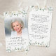 Keep the memory of a loved one close with this custom personalized prayer card featuring one cherished photo, the sentiment FOREVER IN OUR HEARTS, name and dates and an editable heartfelt remembrance message you can change to a meaningful poem, quote or bible verse and soft watercolor white flowers and greenery. It makes a meaningful keepsake to share at a funeral, memorial service, visitation, wake or Celebration of Life and offers comfort and a lasting tribute for family and friends. Its small and portable size of 3.5x2" (wallet-sized) makes it convenient for loved ones to carry it with them as a reminder of your loved one’s life and spirit. Personalization makes each card unique.
