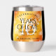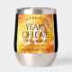 ¡Que el 16 aniversario del boda de topaz dorado sea una celebración inolvidable con este tumbler conmemorativo de vino sin tallo de acero inoxidable! Las elegantes letras con confeti hexagonal sobre un fondo rojo dorado añaden un toque memorable para esta ocasión especial y un hito. Personalizar con el nombre de la pareja, fecha de matrimonio y mensaje de felicitación. El reverso muestra un diseño idéntico. Diseño © W.H. Sim. Ver más en zazzle.com/expressionsoccasions