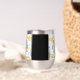¡Que el 18º aniversario del boda de porcelana sea una celebración inolvidable con este tumbler conmemorativo de vino sin tallo de acero inoxidable! Las elegantes letras con un confetti hexagonal con polvo de oro sobre un fondo de mármol blanco y azul de porcelana añaden un toque memorable a esta ocasión especial y un hito. Personalizar con el nombre de la pareja, fecha de matrimonio y mensaje de felicitación. El reverso muestra un diseño idéntico. Diseño © W.H. Sim. Ver más en zazzle.com/expressionsoccasions