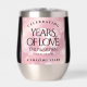 Haga del segundo aniversario del rosa de boda de cuarzo una celebración inolvidable con este tumbler conmemorativo de acero inoxidable sin tallo de vino! Las elegantes letras con confeti hexagonal en un rico fondo rosado añaden un toque memorable para esta ocasión especial y un hito. Personalizar con el nombre de la pareja, fecha de matrimonio y mensaje de felicitación. El reverso muestra un diseño idéntico. Diseño © W.H. Sim. Ver más en zazzle.com/expressionsoccasions
