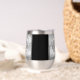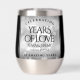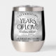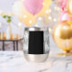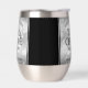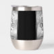 ¡Que el 25 aniversario de los bodas de plata sea una celebración inolvidable con este tumbler conmemorativo de vino sin tallo de acero inoxidable! Las elegantes letras con confeti hexagonal sobre un falso fondo de Relieve metalizado plateado añaden un toque memorable a esta ocasión especial y un hito extraordinario. Personalizar con el nombre de la pareja, fecha de matrimonio y mensaje de felicitación. El reverso muestra un diseño idéntico. Diseño © W.H. Sim. Ver más en zazzle.com/expressionsoccasions
