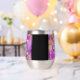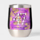 ¡Que el 47 aniversario del boda amatista sea una celebración inolvidable con este tumbler conmemorativo de vino sin tallo de acero inoxidable! Las elegantes letras con confit hexagonal con polvo de oro sobre un fondo amatista violeta añaden un toque memorable a esta ocasión especial y un hito extraordinario. Personalizar con el nombre de la pareja, fecha de matrimonio y mensaje de felicitación. El reverso muestra un diseño idéntico. Diseño © W.H. Sim. Ver más en zazzle.com/expressionsoccasions